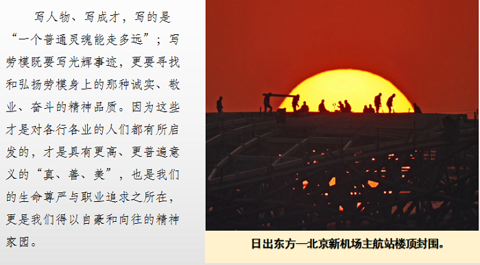 工人日報高級記者李元程特別指出:“新聞寫作中,只有影像和文字互補,才能寫出更好,更有價值的作品。要想寫好新聞必須要先研究新聞,多讀報紙,多研究報紙,使新聞寫作的量變到質變,才能達到新聞寫作水平提升的效果”。要寫好新聞,要用一顆心和雙眼去感受,去觀察生活,留心生活中發生的點點滴滴,才能發掘出更有意義的新聞素材,貼近讀者的心。